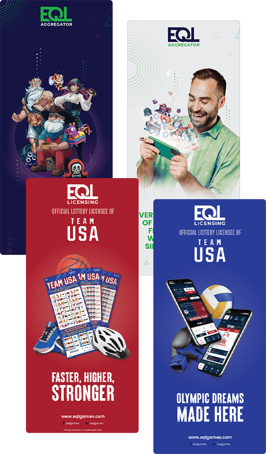 Another highlight of our work for EQL Games was the design of large-format print artwork for a US lottery trade show. Our creative team developed striking visuals that effectively promoted the EQL brand and its prestigious partnership with Team USA Olympic team. This project demonstrated our expertise in creating compelling visual narratives that resonate with a wide audience and enhance brand visibility in large-scale events.